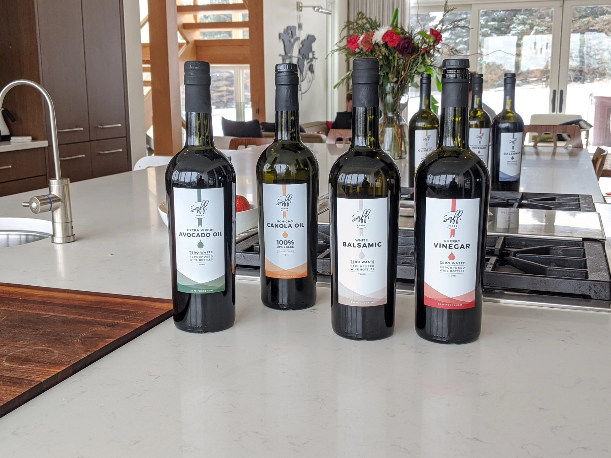 - UPCYCLED PACKAGING: This product is sustainably packaged in 750ml upcycled glass wine bottles which we collect from local restaurants and wine shops. Each bottle is filled by hand with Saffi Saana premium oils and vinegars. Glass wine bottles are reusable and fully recyclable, and come with a built-in, pour-friendly cork insert.
