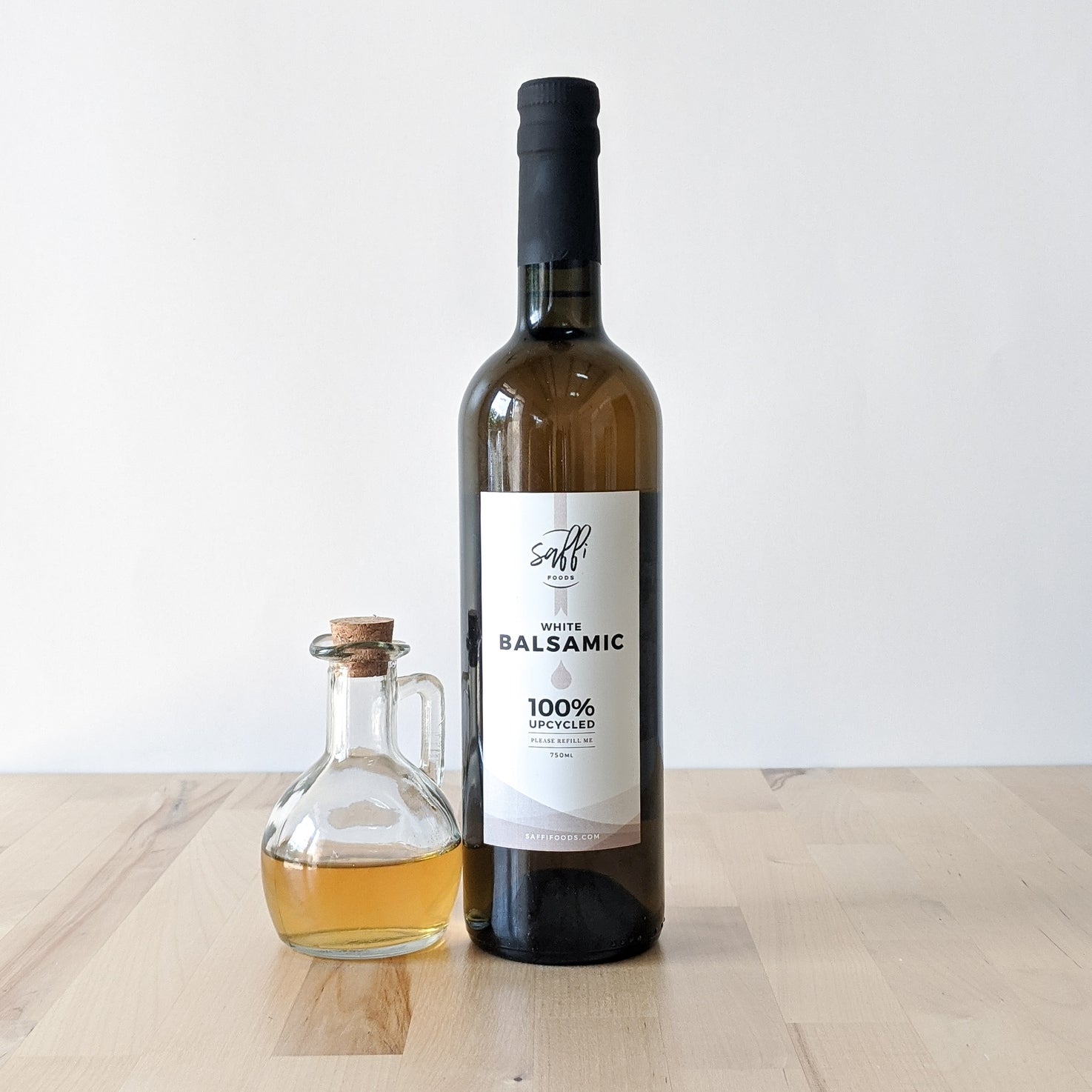 - UPCYCLED PACKAGING: This product is sustainably packaged in 750ml upcycled glass wine bottles which we collect from local restaurants and wine shops. Each bottle is filled by hand with Saffi Saana premium oils and vinegars. Glass wine bottles are reusable and fully recyclable, and come with built-in, pour-friendly cork inserts.